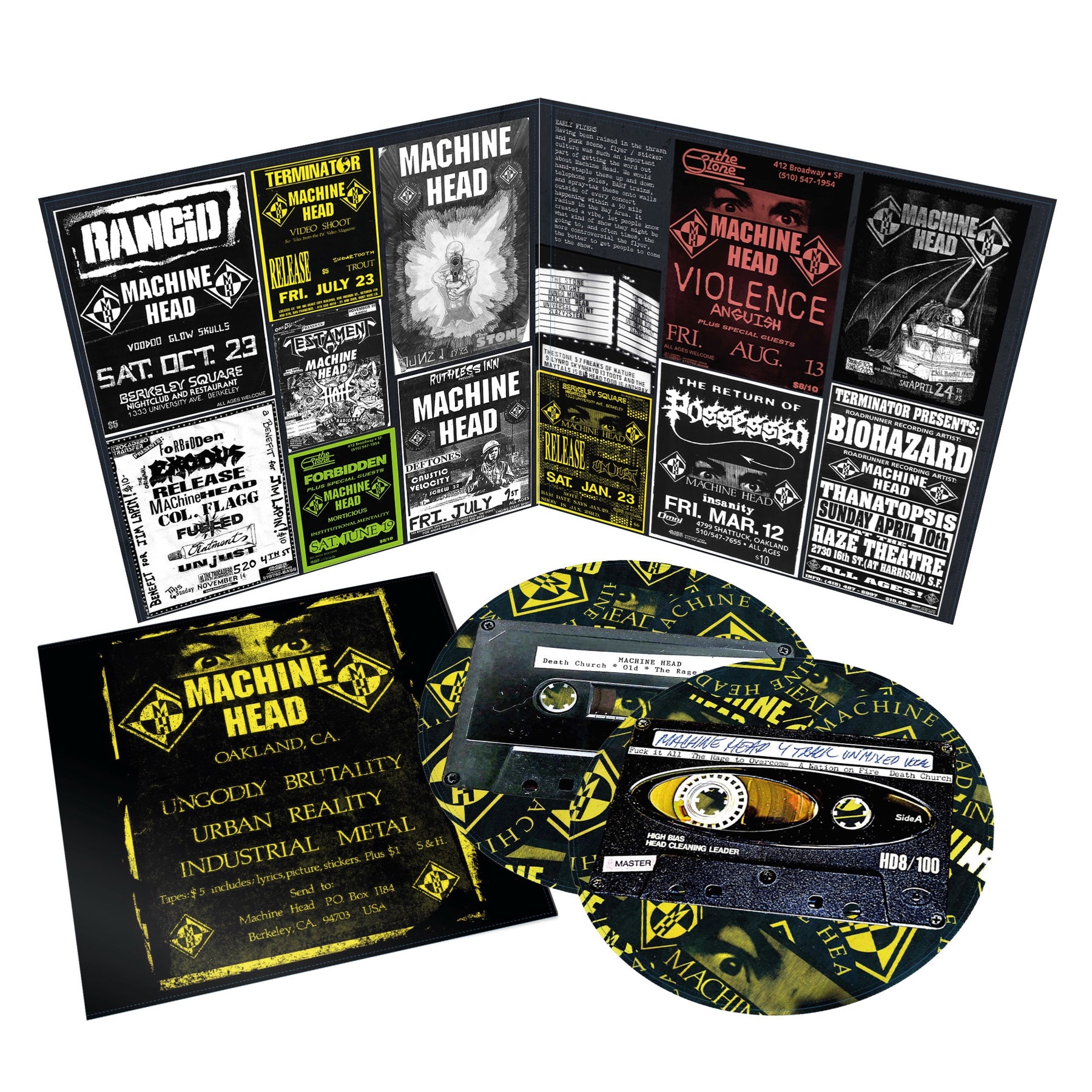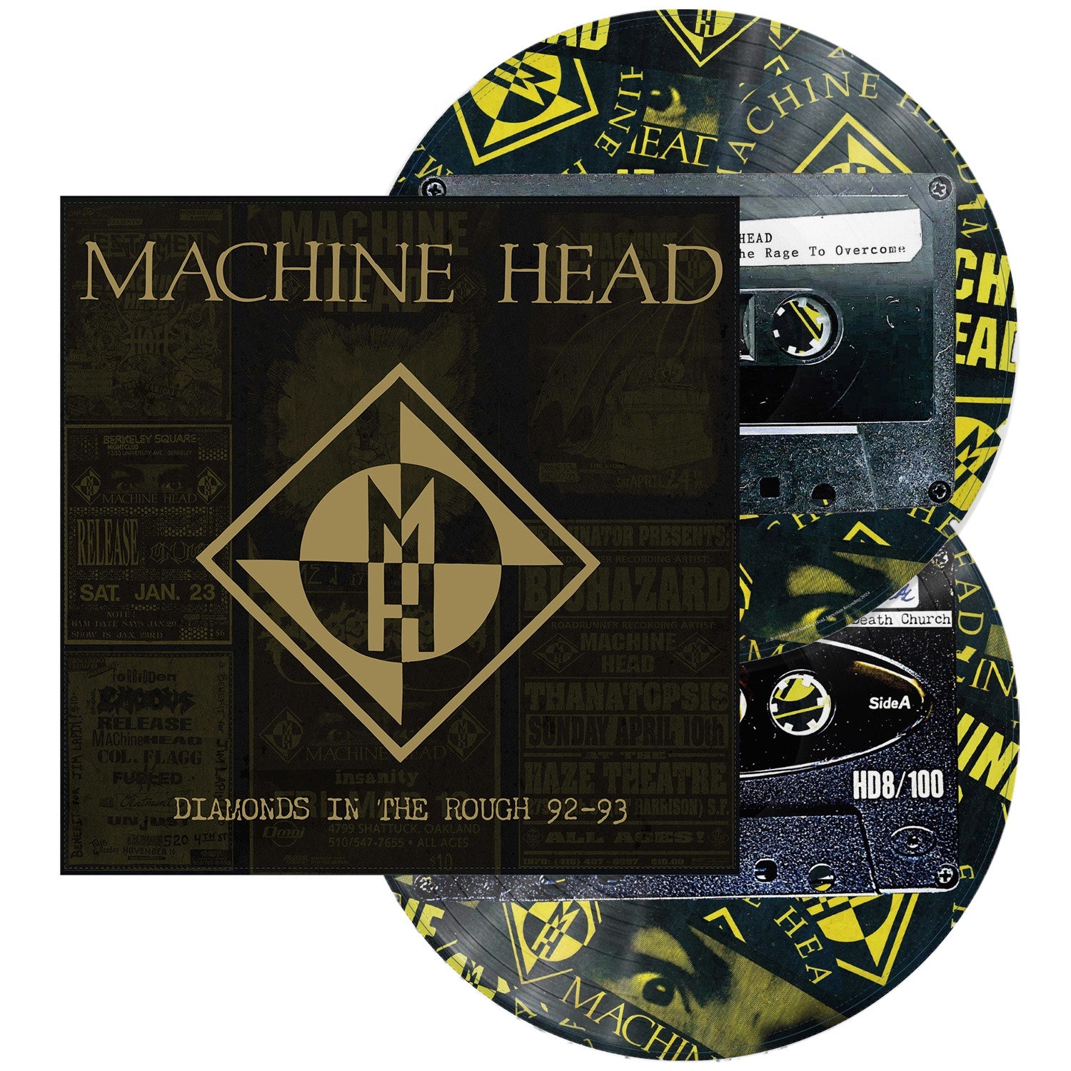 This ultra-deluxe picture disc set is pressed on heavyweight 180 gram, double vinyl. Featuring premium gold foil Machine Head diamond logo on the front gatefold, liner notes by Robb Flynn, black paper slips around vinyl itself, a massive16 page [12"x12"] booklet featuring unreleased photos and live shots from the era out of the band members personal stash.